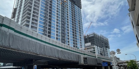 総戸数1247戸のタワーマンション「SHIROKANE The SKY」の今を見てきた。地上45階建ての東棟と地上19階建ての西棟の2棟構成となっている。22年12月竣工予定で23年3月下旬入居開始される。
