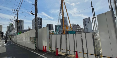 住友不動産とフージャースコーポレーションが参加組合員として参画する「大山町クロスポイント周辺地区第一種市街地再開発事業」。東武東上線大山駅より続くハッピーロード大山商店街の一部と周辺の住宅地などを含む敷地約0.7haが施行区域となっています。AからDの4街区に分けられており、A街区とD街区はタワーマンション(A街区:地上26階地下1階建て総戸数239戸、D街区:地上25階地下2階建て総戸数88戸)として、B街区は地上8階建てで総戸数18戸のマンションと子育て支援施設、C街区は地上4階建ての商業施設として計画されています。21年9月15日に着工、24年12月に竣工予定。