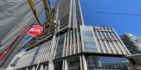 相鉄不動産と東急が分譲する横浜駅直結のタワーマンション「ザ ヨコハマ フロント タワー」の現況です。地上43階、地下2階建ての総戸数459戸のタワーマンションで、 2024年4月下旬に入居を開始予定ということもあり、現地では施工最終段階といった印象でした。宿泊施設や店舗、事務所なども併設します。